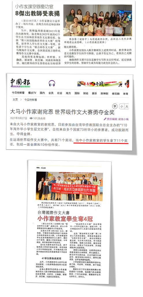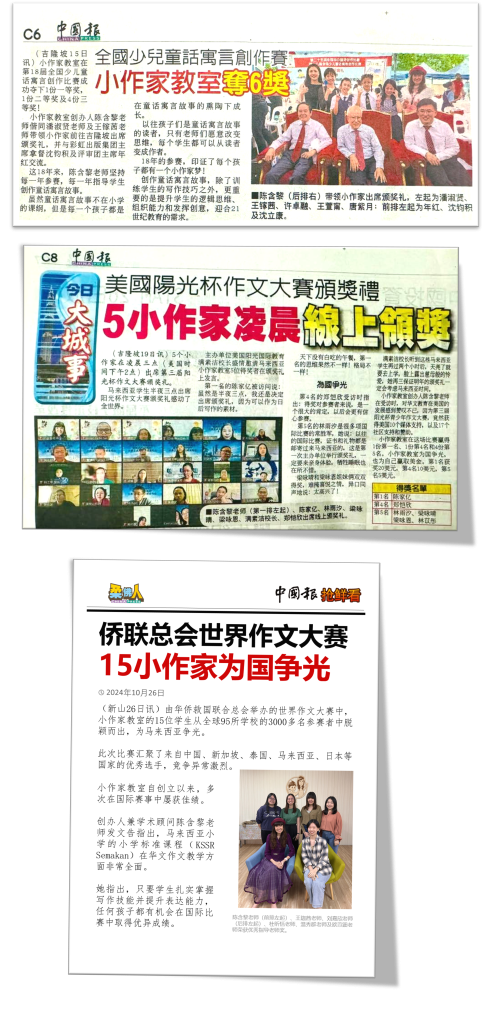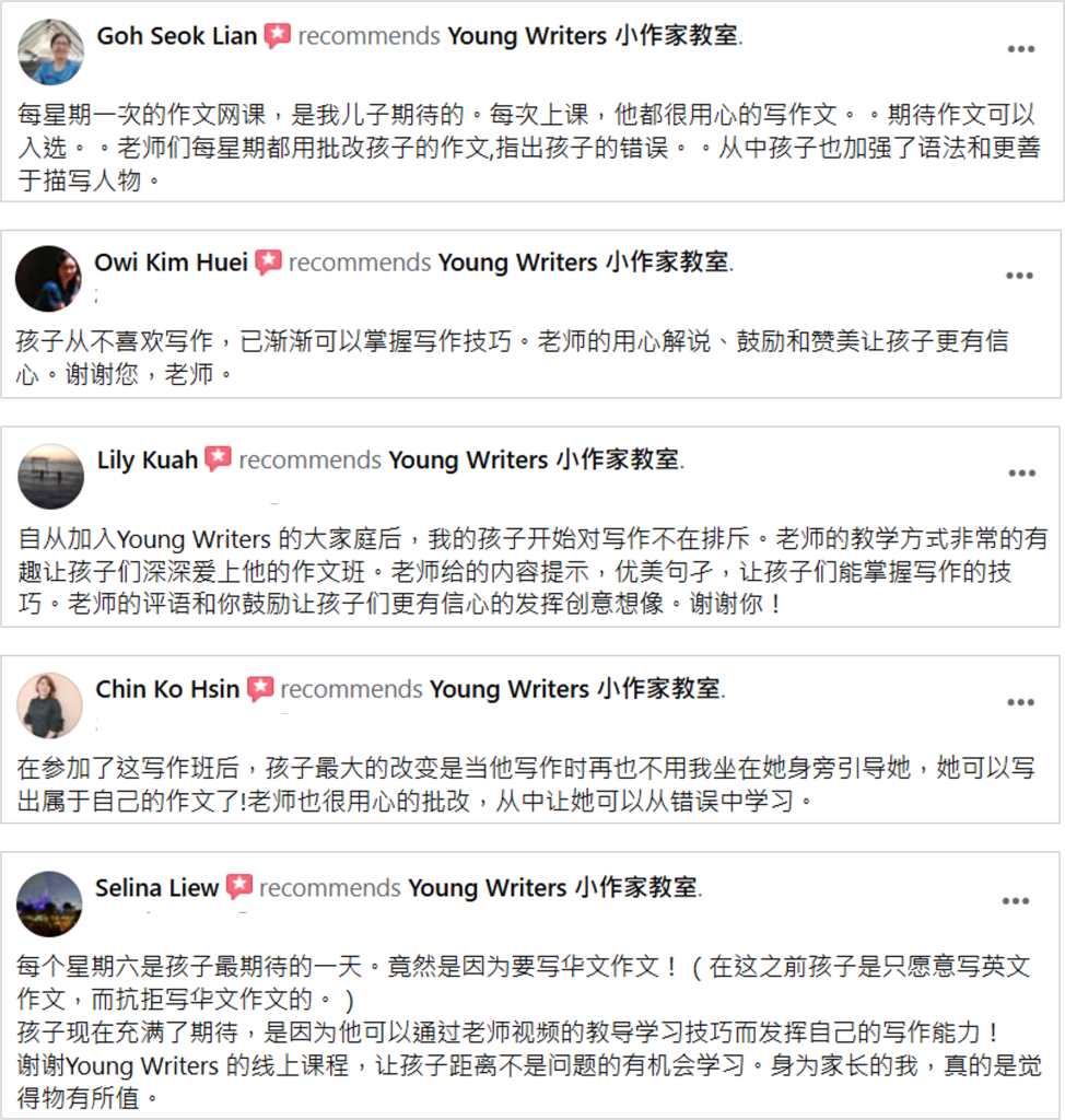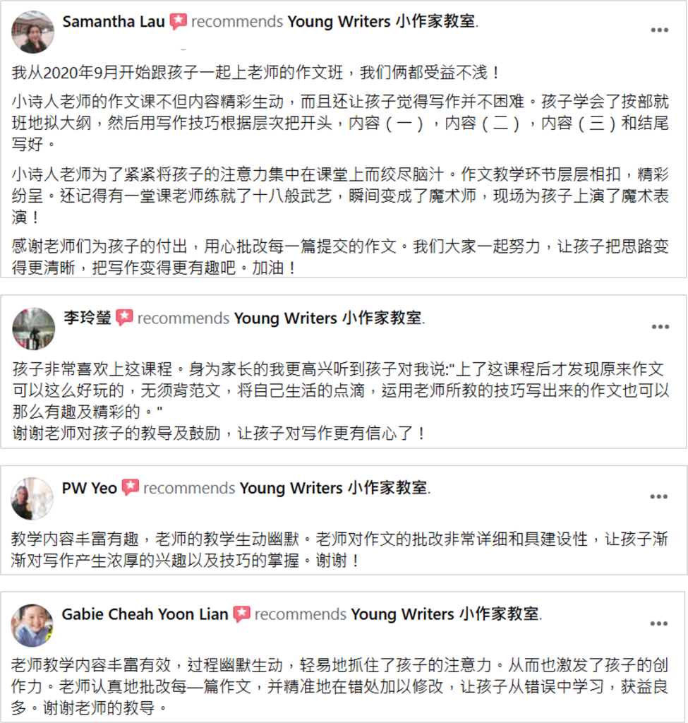 小作家教室 线上作文课 专业的作文导师为您孩子的作文负责 真正学会写作文用文字记录生活在纸上留下成长的足迹 想要帮助孩子学好作文吗?马上联系我们吧! 听听院长怎么说: 播放视频 在小作家教室的线上作文课...... 没有功课,轻松学习 作文在上课时间内完成,下课后没有功课! 提高表达能力 不是死记硬背,而是学会把“想说的话”写成精彩的作文! 考试得高分 课程根据小学课标设计,分年级上课,对考试有直接帮助! 家长的最佳拍档 有老师的联系方式,成为您教育孩子最坚实的后盾! 看得到的进步 每周批改,根据孩子的程度提供进步方案 最专业的作文导师 一年教出超过300个学生在世界级比赛得奖, 最爱学生的好老师,帮助您的孩子进步,也可以帮助他成为全国冠军! 想要帮助孩子学好作文吗?马上联系我们吧! 新闻剪报: 给孩子最专业的作文导师,帮助他成为写作文的高手。 想要帮助孩子学好作文吗?马上联系我们吧! 家长有话说: 专业的教学团队 陪伴您的孩子每个星期写一篇作文,专业导师负责,孩子的作文越写越好。 想要帮助孩子学好作文吗?马上联系我们吧! Copyright © 2012-2025 Pusat Tuisyen Penulis Muda (LLP0040261-LGN)